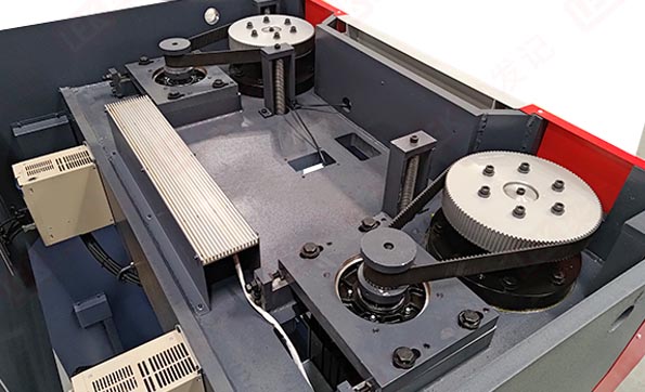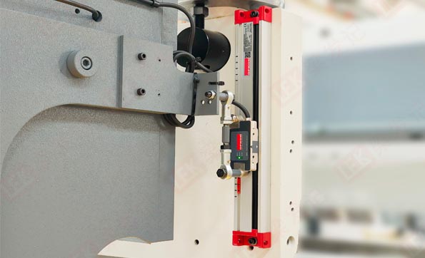 机床两侧各安装一把欧州进口名牌磁栅尺,能快速精准的将数据反馈到控制系统,确保Y1、Y2轴的精确同步,工作精度达到0.01mm。