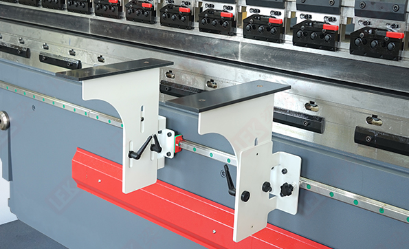 前托料架沿直线导轨直线左右移动,辅助折弯工作,提供工作效率
