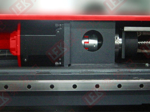 Y轴采⽤德国品牌滚珠丝杆和导轨;Y轴上置式设计,避免废料掉落损坏丝杆,保养简易。